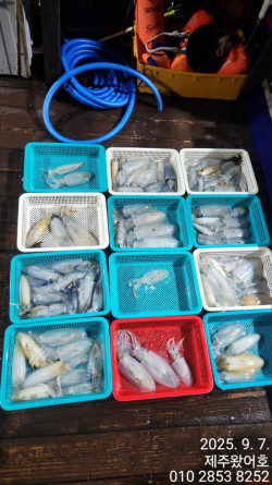 **제주왔어호 야간무늬팁런 조황**대~~~박 조황 올립니다.전체 200마리 넘겼구요.장원 44마리((17kg))젤큰 놈이 1.7kg매일매일 오늘만 같았음 좋겠습니다.*전화금지 시간((예약사이트예약))*아침10시~오후5시까지((선장도 잠을 자야 합니다...))9월15일 저녁반~ 16일 새벽반야간팁런 다녀왔습니다.열낚해주시고많이 잡아주셔서 감사감사합니다.사이즈 대~~~박마릿수 대~~~~~박 하루 였네요.모슬포항에서 출항했구요.((출항지는 상황에따라 수시로바뀌며,출조당일 아침10시전에 일괄 문자연락 드리겠습니다.))야간에도 더우니 시원하게 입구 오세요^^수온은27.5도~29도((높은 수온에 죽는 놈들이 많으니 포인트이동시마다 개인 물통 직접확인해 죽은 놈은 빼주시면 빙장해드립니다))*찐~~한 무늬 손맛 보실분 예약주세요^^***토욜저녁반ㆍ일욜새벽반 여유자리 많이 있습니다.**출항일 : 8월부터 11월말까지((야간팁런))출항지 : 모슬포항((출항 당일 아침10시이전일괄문자 연락드립니다.혹시 연락 못받으신분은전화확인 부탁드립니다.))출항시간*저녁반:오후 6시 30분 출항 ~ 새벽 00시 30분입항*새벽반:새벽 1시 출항 ~ 아침 7시 입항((한타임 8만원 / 두타임 14만원))**예약 당일 입금없음 자동 취소됩니다.***뱅기는 제주도착 오후3시가는뱅기는 오전10시 전후 추천*11월말까지 야간무늬 나가니 마니 와주세요^^***왔어호 예약 공지(필독)***((날씨로 인한 출항 가능여부는 2일전.확정됩니다))***자리배정은 승선 후 추첨***80세이상 자리배정후연박자ㆍ4인이상단체 우선추첨☆☆낚시대+릴+에기 대여됩니다.☆☆낚시대+릴 1세트 = 2만원에기 무상대여((손실시=1만원))(낚시대파손과 라인 30%이상 손상추가금액 발생합니다)**무늬 처음 입문하시는분은 몸만 오셔서 체험 후 장비와 에기 구입하시는걸 추천드립니다.(장비와 에기까지 대여됩니다)****마지막 사진까지 보시면출항지ㆍ숙소ㆍ식당ㆍ렌트카잘먹힌 에기 정보까지**에기+마스크=50그람 가장 많이 사용합니다.경우에 따라 조금가볍게 무겁게 사용하니 조금씩 조정하시면 됩니다.선장 개인적으로 후지토에기마스크 추천드립니다.여러메이커 에기에 호완성이 좋습니다.에기는 속지가 빨간것이 잘 먹네요.후지토 레드/퍼플 3.5호 추천요.((가격대비 효과 짱입니다.))인터넷에서 데일리피싱 검색하시면 됩니다.((왔어호는 위 판매점과 아무런 연관이 없습니다.선장이 사용해보고 추천드리는 겁니다.오해가 없으시길...))낚시대는 65대 아래길이로, 스피닝릴은 3000번,합사는 0.8호, 쇼크는 2.5호(1~1.5m)드렉은 에기 회수할때 드렉소리 안나게 조절하는게 좋습니다.무늬 손맛 보러 제주로....이왕이면 왔어호로 와주세요^^**토욜저녁반ㆍ일욜새벽반 여유자리 많이 있습니다.** *왔어호 예약바로가기https://welcome.sunsang24.com/ship/schedule_fleet/*왔어호 밴드바로가기/ 더 많은 사진https://www.band.us/band/85207657#제주왔어호 #갑오징어 #제주갑오징어 #제주선상갑오징어 #한치 #한치이카메탈 #제주한치 #제주선상한치 #제주야간팁런 #제주야간무늬팁런 #제주무늬팁런 #제주선상팁런 #제주선상무늬오징어 #제주팁런#제주모슬포 #제주사계 #제주신창 #제주서귀포*** 제주 왔어호***호 예약 안내 ***예약문의 : 010-2853-8252오시는길 : 시즌별 변동 예약 시 확인해주세요홈페이지 : https://welcome.sunsang24.com/왔어호 밴드 : https://band.us/band/85207657 (왔어호밴드가입시 휴대폰 인증으로 해주세요)