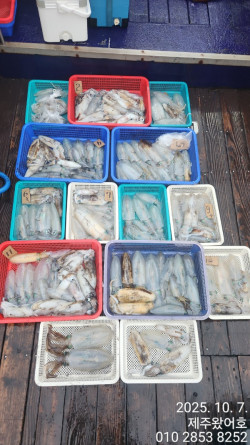 **제주왔어호 야간무늬팁런 조황***150마리 찍구왔네요^^*10월 6일 저녁반~7일 새벽반((롱타임))야간 팁런 조황입니다.((롱타임은 저녁6시30분에 출항해서아침7시에 입항합니다.토욜과 물이 쎈날만 롱타임입니다.))모슬항에서 출항했구요.((출항지는 상황에따라 수시로바뀌며,출조당일 아침10시전에 일괄 문자연락 드리겠습니다.))**7일 저녁반부터 10일 새벽반까지태풍영향으로 출항 취소***전화금지 시간((예약사이트예약))*아침10시~오후5시까지((선장도 잠을 자야 합니다...))**사전 협의없는 동영상촬영 금지****왔어호는 별도의 뜰채를 해드리지 않습니다.((두분당 한개의 뜰채가 준비 되어 있으니, 작은 사이즈는 직접하시거나 옆 조사님과 도와서 하셔야 합니다.))**저녁반은 시작과 동시에 우당탕하길래오늘 200개는 기본으로 찌겠구나 했는데새벽반에 바람과 너울 그리고 쎈물에 갈수 있는 포인트가 많지 않아 새벽반이 많이 저조했네요.오늘은 계란부터 무까지 고루 나왔네요...그래두 체적으로 사이즈 마니 좋아졌어요.야간에 이젠 조금 시원한 바람이 불어주네요.((가을잠바 챙겨오세요^^))수온은 아직 높아요.25.5도~27도((아직도 높은 수온에 죽는 놈들이 많으니 포인트이동시마다 개인 물통 직접확인해 죽은 놈은 빼주시면 빙장해드립니다))*찐~~한 무늬 손맛 보실분 예약주세요^^*** 이후 몇일간 예약 현황**((예약사이트로 예약주세요.))7일 롱타임 ㅡ.기상악화8일 롱타임 ㅡ 기상악화9일 롱타임 ㅡ 기상악화10일 롱타임 ㅡ 9자리 여유11일 롱타임 ㅡ 1자리 여유12일 저녁반 ㅡ 마감13일 새벽반 ㅡ 7 자리 여유저녁반 ㅡ 10 자리여유이후 여유자리 많으니 예약주세요^^((출항여부는 출항 2일전 확정됩니다.))출항일 : 8월부터 11월말까지((야간팁런))출항지 : 모슬포항((변경시 출항 당일 아침10시이전일괄문자 연락드립니다.혹시 연락 못받으신분은전화확인 부탁드립니다.))출항시간*저녁반:오후 6시 30분 출항 ~ 새벽 00시 30분입항*새벽반:새벽 1시 출항 ~ 아침 7시 입항((한타임 8만원 / 두타임 14만원))**예약 당일 입금없음 자동 취소***뱅기는 제주도착 오후3시가는뱅기는 오전10시 전후 추천*11월말까지 야간무늬 나가니 마니 와주세요^^**왔어호 예약 공지(필독)**((날씨로 인한 출항 가능여부는 2일전.확정됩니다))***자리배정은 승선 후 추첨***80세이상 자리배정후연박자ㆍ4인이상단체 우선추첨**낚시대+릴+에기 대여됩니다.**낚시대+릴 1세트 = 2만원에기 무상대여((손실시=1만원))(낚시대파손과 라인 30%이상 손상추가금액 발생합니다)**무늬 처음 입문하시는분은 몸만 오셔서 체험 후 장비와 에기 구입하시는걸 추천드립니다.(장비와 에기까지 대여됩니다)****마지막 사진까지 보시면출항지ㆍ숙소ㆍ식당ㆍ렌트카잘먹힌 에기 정보까지**에기+마스크=50그람 가장 많이 사용합니다.경우에 따라 조금가볍게 무겁게 사용하니 조금씩 조정하시면 됩니다.선장 개인적으로 후지토에기마스크 추천드립니다.((여러 메이커 에기에 호완성이 좋습니다.))에기는 속지가 빨간것이 잘 먹네요.후지토 레드/퍼플 3.5호 추천요.((가격대비 효과 짱입니다.))인터넷에서 데일리피싱 검색하시면 됩니다.((왔어호는 위 판매점과 아무런 연관이 없습니다.선장이 사용해보고 추천드리는 겁니다.오해가 없으시길...))낚시대는 65대 아래길이로, 스피닝릴은 3000번,합사는 0.8호, 쇼크는 2호(1~1.5m)드렉은 에기 회수할때 드렉소리 안나게 조절하는게 좋습니다.무늬 손맛 보러 제주로....이왕이면 왔어호로 와주세요^^ *왔어호 예약바로가기https://welcome.sunsang24.com/ship/schedule_fleet/*왔어호 밴드바로가기/ 더 많은 사진https://www.band.us/band/85207657 #제주왔어호 #갑오징어 #제주갑오징어 #제주선상갑오징어 #한치 #한치이카메탈 #제주한치 #제주선상한치 #제주야간팁런 #제주야간무늬팁런 #제주무늬팁런 #제주선상팁런 #제주선상무늬오징어 #제주팁런#제주모슬포 #제주사계 #제주신창 #제주서귀포*** 제주 왔어호***호 예약 안내 ***예약문의 : 010-2853-8252오시는길 : 시즌별 변동 예약 시 확인해주세요홈페이지 : https://welcome.sunsang24.com/왔어호 밴드 : https://band.us/band/85207657 (왔어호밴드가입시 휴대폰 인증으로 해주세요)